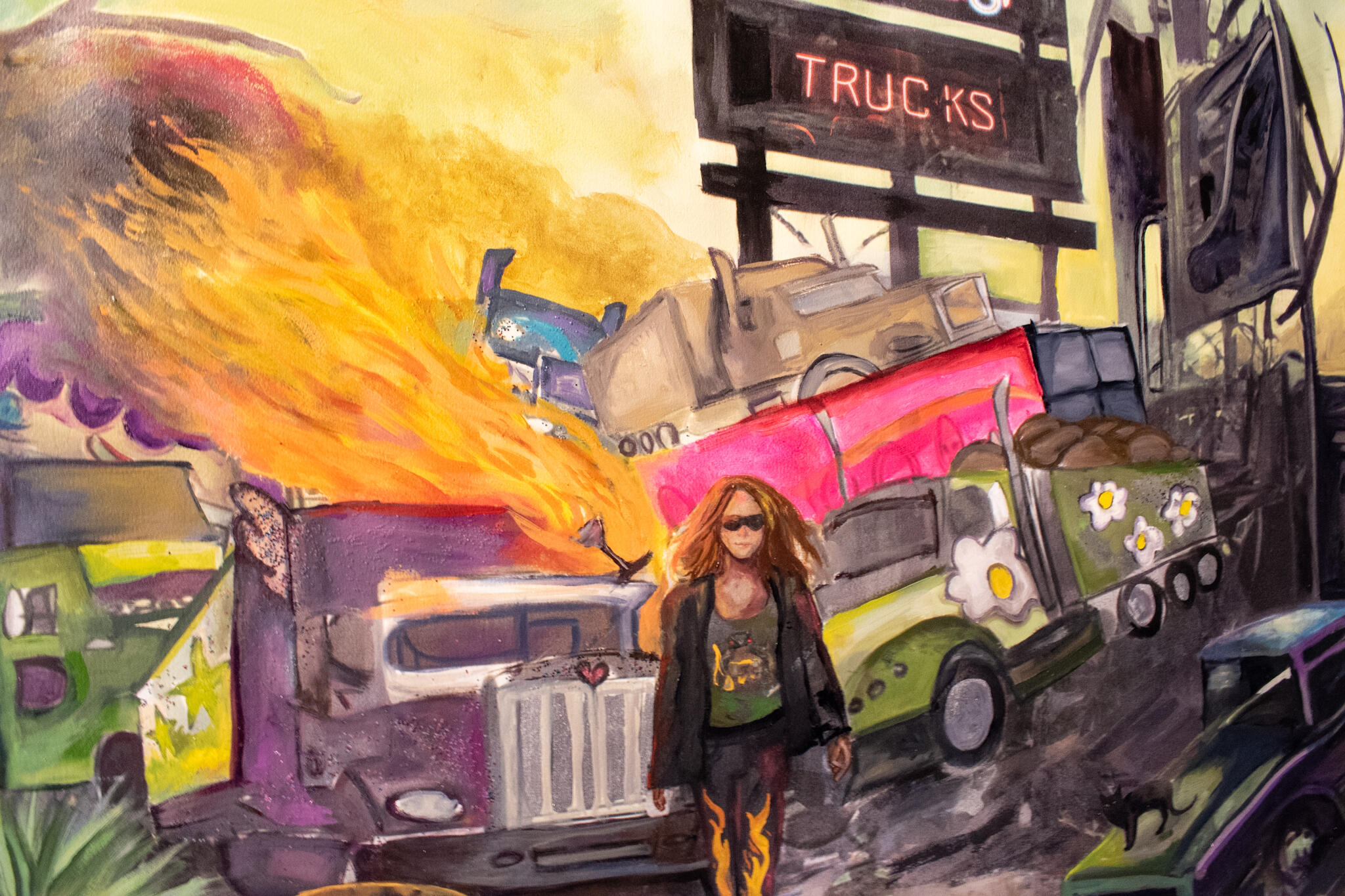 I am an artist that uses art to make sense of the world around me and process things that have happened to me, most recently in a humorous way. I feel that painting is very healing for me and allows me to take something more negative and turn it around and make sense of It in a more positive way.I have produced a wide array of artistic works across various media, including digital media, charcoal drawings, and mixed media. Presently, my artistic pursuits have focused on experimenting with oil painting over a diverse range of substrates. I draw inspiration from other artists such as Lisa Yuskavage, whose use of color and subject matter greatly resonates with me. My works are characterized by their introspective nature, seeking inspiration from the imagination and past experiences to create visual landscapes of daydreams and memories, each articulated through the human figure. In my most recent artworks, I have incorporated humor as a means of conveying my message. In my most recent work, I have drawn inspiration from the symbolism of trucks, which are often associated with concepts such as masculinity and freedom and utilized these associations to generate comedic effect. By employing humor, I aim to engage the viewer in a more lighthearted and approachable manner, while still conveying a deeper meaning. Emphasizing color and seamless transitions, I employ texture and brushstroke to generate works that vigorously convey their themes and moods to the viewer.For me, art is a way to express myself and connect with others on a deeper level. Through my work, I hope to inspire others to embrace their individuality and find the beauty in imperfection. My current projects include a series of paintings exploring the relationship between humor and healing. I believe that art has the power to inspire and uplift, and I am passionate about creating