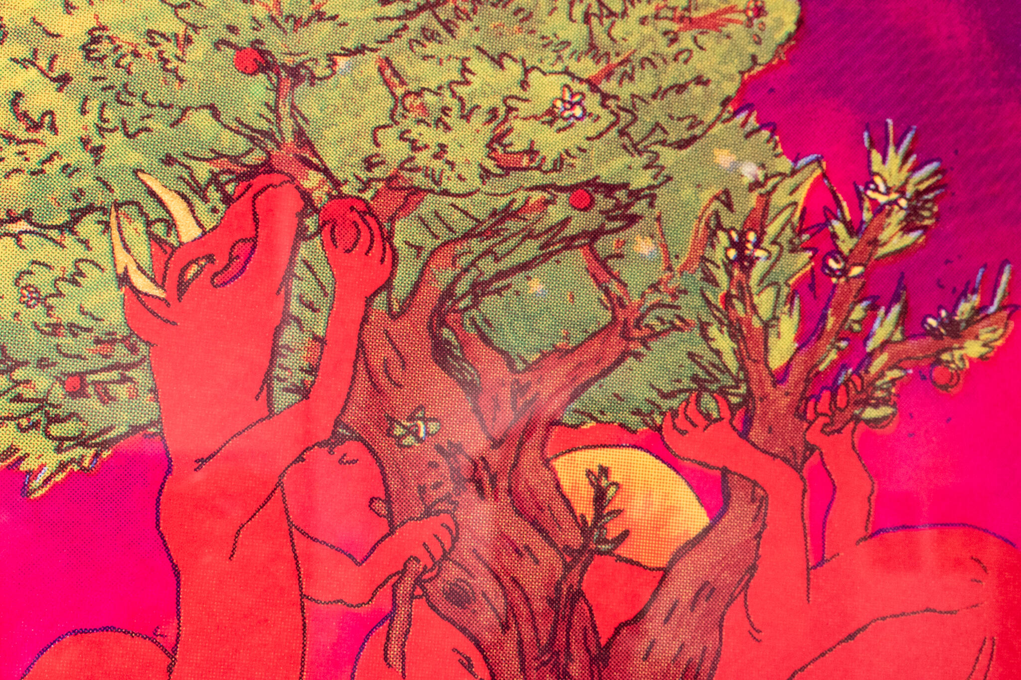 approach my role as an artist. I believe that by continuing to push the boundaries of stories being told, new possibilities for the world can be imagined and introduced to new people.In the spirit of spreading ideas, printmaking is my medium of choice because of its accessibility. We live in a time when anyone can print, and anyone can learn to print. This has not always been the case, but prints have always had the ability to spread ideas through images to multitudes of people more than any other medium before the rise of digital mass communication. I seek to keep that printmaking tradition alive, and to find ways to creatively print images that can push others to engage in more traditional art. In my most recent screenprints, I hope to show the ways written history affects our understanding of reality. Unlike mediums that deal in objects, prints can be copied over and over, to be seen by new viewers each time. There are many things which one never thinks about unless one is told, and many topics in history open themselves up to further discussion when this happens. I believe that printmaking is an ideal way to spread knowledge, and spark discussion among viewers and their peers.The process of reflection that began when I first put pen to paper has continued, it’s only the places my eye has landed on that have changed. From the beginning, my desire to retell old narratives has been with the intention of adding in the things I wish to see in them, the things that reflect the world I see. As I read and learn more, my desire only grows, as I become keenly aware of the difference between narratives and current reality. I am hoping to help create a world I want to live in, to provide people with experiences that help to make sense of their own lives in the times to come. With my current work I’m hoping to radically redefine people’s understanding of religious history, and in that way change people’s perspectives on the world.My art is a process of reflection, and through print I am able to share my unique perspective of the world with so many people; I am making art that portrays how I want the world to be.