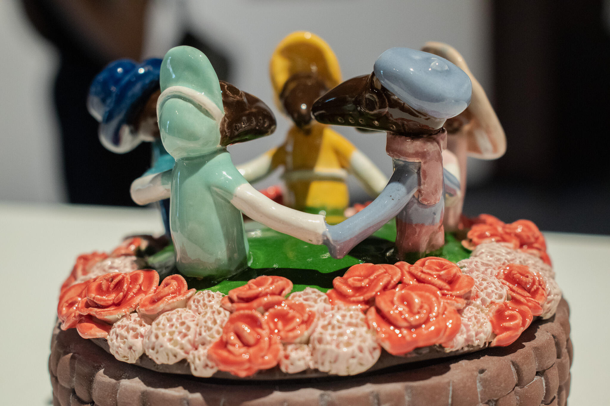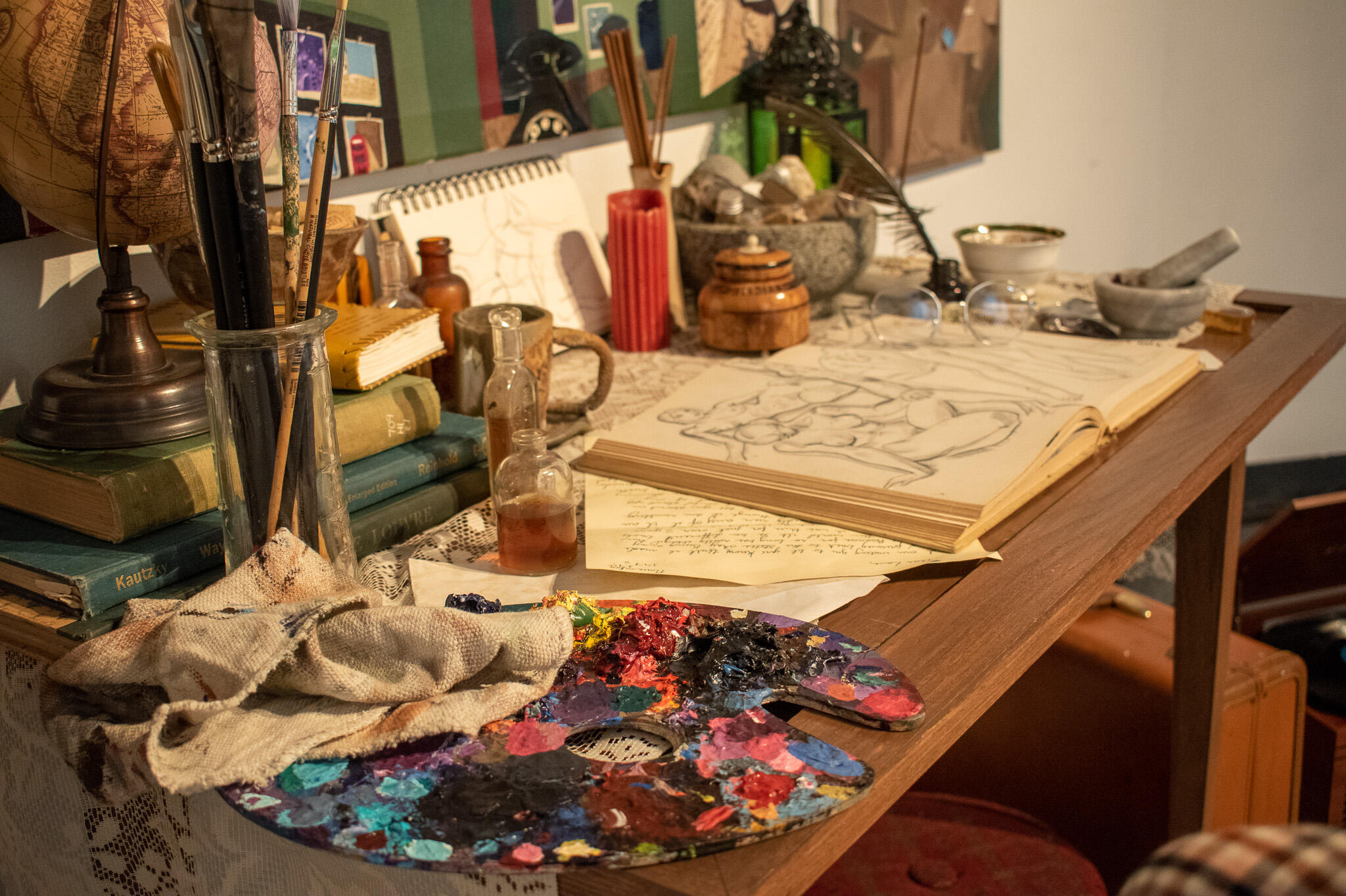 Marble Ramirez is a mixed media artist and printmaker, as well as a current senior in her BFA program. When approached for comment, she had the following to say:“My work focuses on narrative forms, and the way certain narratives can exist in unexpected places.It truly is a process of reflection. I see the world in a certain way, and as I try to understand the things that I see, I make artworks that portray how I understand the world to be. But I go further. I create a world I want to live in, I provide people with experiences that help to make sense of their own lives in the times to come. With my current work I’m hoping to radically redefine people’s understanding of religious history, and in that way change people’s perspectives on the world.”Marble returned to reading his book and was unable to hear our further questions.